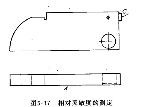 相對(duì)靈敏度測定,如下圖,將超聲波探傷儀探頭放在C位置。靈敏度控制最初放在最小位置,移動(dòng)探頭,直到熒光屏上出現(xiàn)1.5毫米洞反射回的波為止。在給定的靈敏度控制位置下,反射的高度就是相對(duì)靈敏度。