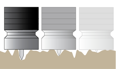 單點測量 通過計算壓針壓入的深度來表示粗糙度(即Rmax值) 測量孤立的多點,計算各點深度的絕對平均值 適合粗糙的表面(肉眼即可辨別) |