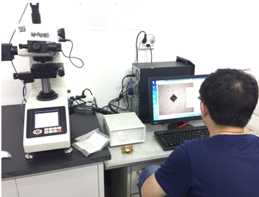 圖4. 對(duì)某汽車發(fā)動(dòng)機(jī)用戶進(jìn)行TIME6610AT全自動(dòng)顯微硬度計(jì)滲氮硬度梯度檢測(cè)工藝培訓(xùn)