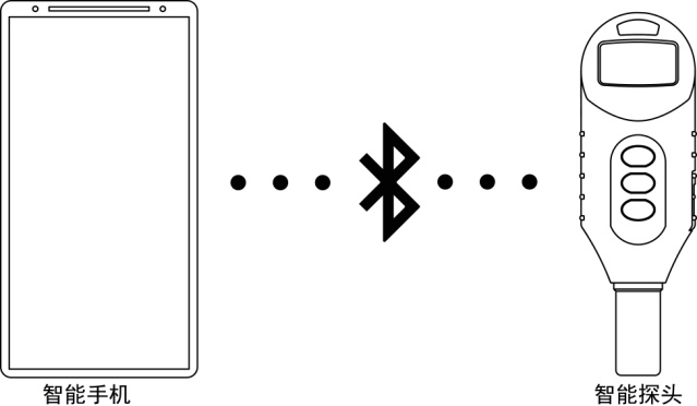 產(chǎn)品由1臺智能手機(jī)+1支智能探頭組成,兩者通過藍(lán)牙進(jìn)行無線通信。
