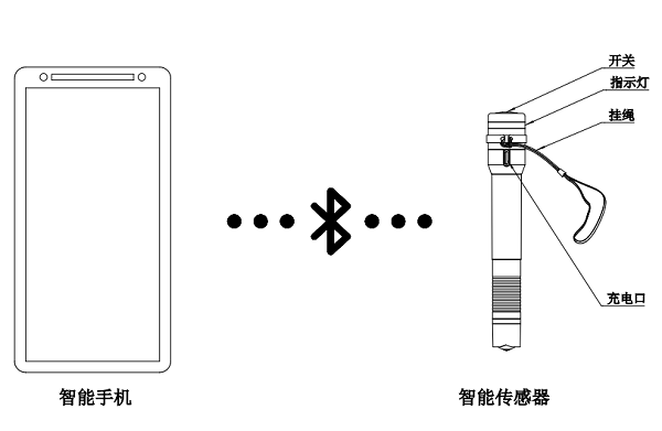 智能傳感器部分通過唯一按鍵開機,通過不同的燈光顯示,提示儀器狀態(tài);