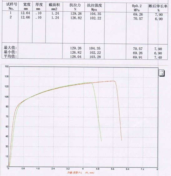 北京時(shí)代集團(tuán)之峰科技有限公司用最新型的時(shí)代金屬拉壓試驗(yàn)機(jī)對(duì)鐵皮進(jìn)行了拉伸實(shí)驗(yàn)。實(shí)驗(yàn)速度定為2毫米每分鐘,參數(shù)距離是50毫米。夾具采用專門的金屬拉伸牙口鉗。實(shí)驗(yàn)步驟是將材料固定到夾具上,記錄好原材料長(zhǎng)度并標(biāo)識(shí),開始實(shí)驗(yàn),以每分鐘2毫米進(jìn)行勻速拉伸,直到斷裂,記錄數(shù)據(jù)。最后報(bào)告內(nèi)容是材料長(zhǎng)度大小,最大加荷力,斷后伸長(zhǎng)率,力值位移,抗拉強(qiáng)度。