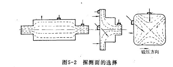 鍛件中的缺陷方向,一般與鍛壓方向垂直,因此,探測(cè)時(shí)應(yīng)以鍛壓面作主要探測(cè)面,如下圖所示。在探測(cè)過(guò)程中,探傷儀探頭的移動(dòng)應(yīng)使被測(cè)部位的整個(gè)截面都受到聲束的掃查。其移動(dòng)速度約為50~100毫米/秒,移動(dòng)線(xiàn)的間距通常不超過(guò)晶片尺寸之半。