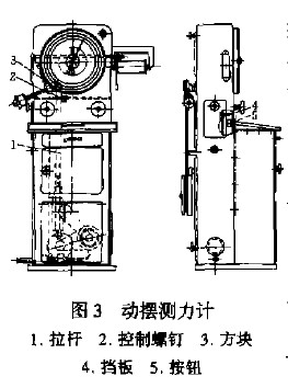 如圖3.可調(diào)整測力計橫隔板上的控制螺釘2,調(diào)整到指針能轉(zhuǎn)一周稍超過2~3格,此時要注意拉桿1上的擋板4先觸動按鈕5,然后方塊3再相繼有控制螺絲2接觸,如果不注意這種情況會使機器發(fā)生意外損壞。