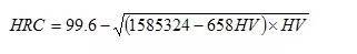 本公式與國家標(biāo)準(zhǔn)實(shí)驗(yàn)換算值對照,換算式計(jì)算結(jié)果與標(biāo)準(zhǔn)實(shí)驗(yàn)值之誤差為±0.1HRC。