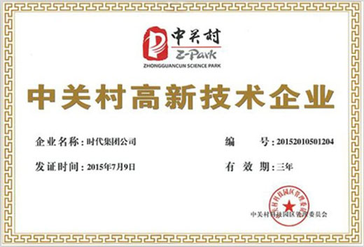 時(shí)代集團(tuán)公司喜獲中關(guān)村高新技術(shù)企業(yè)認(rèn)定證書