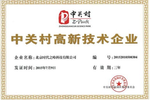 時(shí)代之峰科技有限公司喜獲中關(guān)村高新技術(shù)企業(yè)認(rèn)定證書
