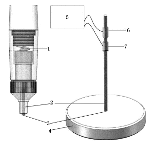 超聲接觸阻抗法是一種非直接測量壓痕的動態(tài)壓入法。端部鑲有特定壓頭的振動桿受到激勵做縱向超聲振動,用一定的試驗力將壓頭壓入試驗件表面,振動桿的縱向振動將受到阻抗,諧振頻率發(fā)生變化。其變化量與壓痕表面積和系統(tǒng)的有效彈性模量成函數(shù)關(guān)系,硬度值由頻率變化得到。